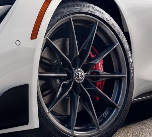 رینگهای آلیاژی فورج ۱۹ اینچی سبک، مقاوم و شیک با تایرهای Michelin® Pilot® Super Sport پوشانده شدهاند تا شتاب، فرمانپذیری و توان ترمزگیری GR Supra را بهینه کنند.